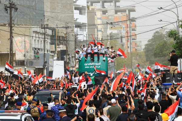 Cheering fans line the streets in Baghdad as they gather to celebrate Iraq’s qualification for the 2026 World Cup, the first time they have made it to the finals since 1986.