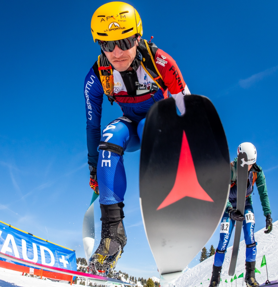 France’s Thibault Anselmet during the final of team relay sprint at the ISMF Ski Mountaineering World Cup in Villars, Switzerland.