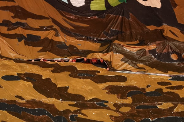 Lille’s supporters look through a tifo before their team’s Ligue 1 match against Lens.
