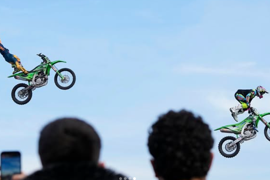 Riders perform during a freestyle motocross show at the EICMA exhibition motorcycle fair in Rho on the outskirts of Milan.