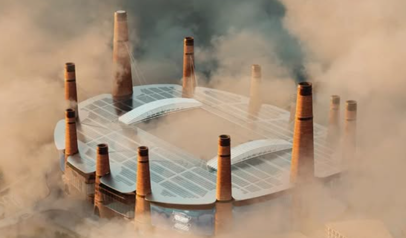 An artist’s impression of Birmingham City proposed new ground featuring faux chimneys.