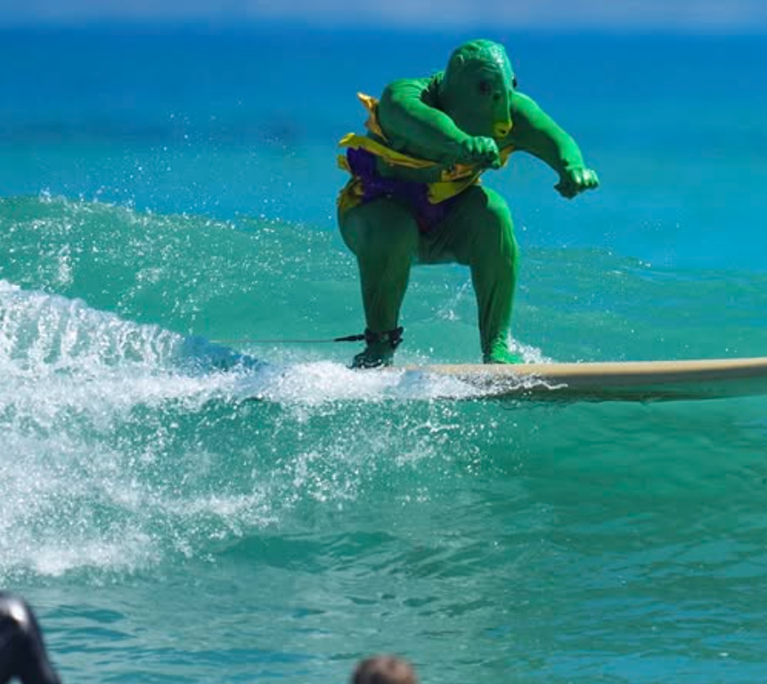 Fancy dress surfing off the coast of Cape Town.