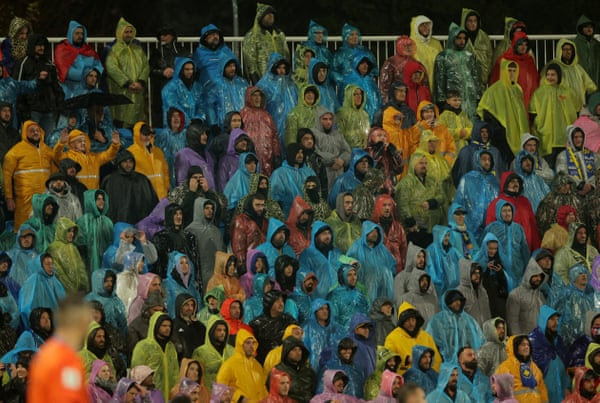Kosovo fans gutsing it out to watch their team take on Switzerland.