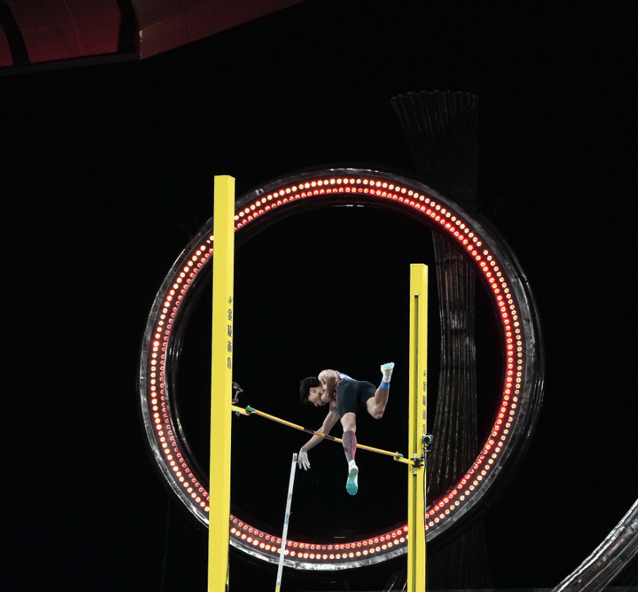 Pole vaulting at the China games. Make what you want of what that ring is.